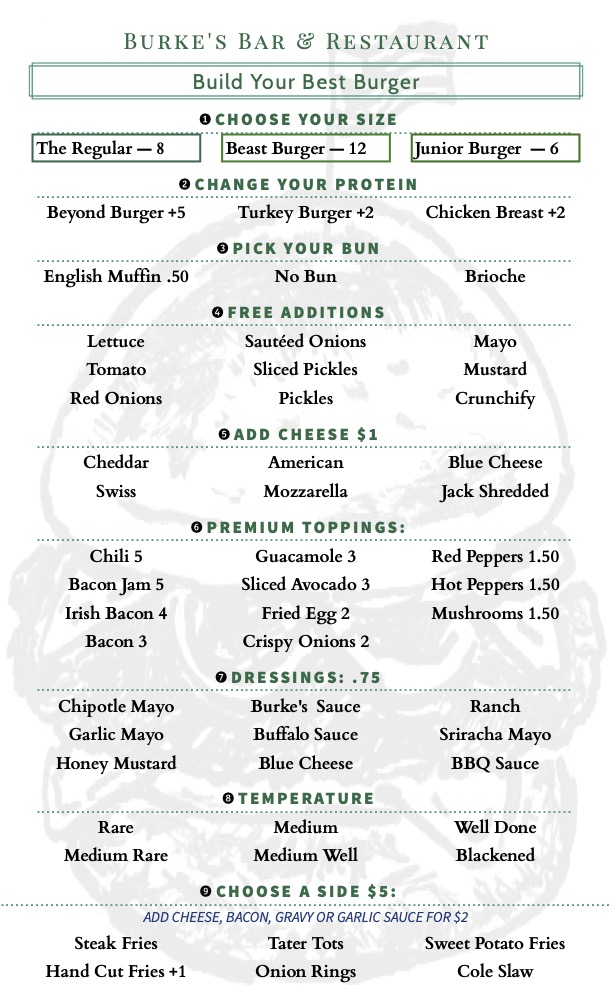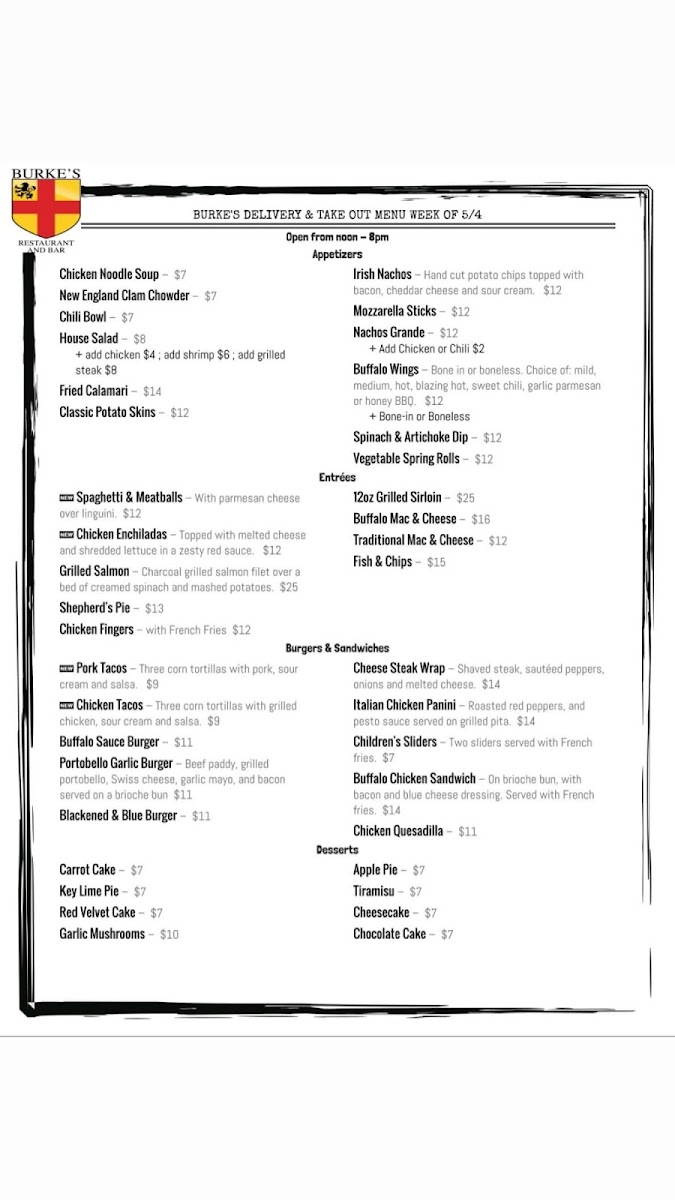 Welcome to Burkes Restaurant and Bar, a beloved fixture in Yonkers, NY, known for its vibrant atmosphere and cozy charm. The menu is a delightful fusion of hearty Irish classics and contemporary favorites, perfect for any occasion. Dive into their St. Patrick’s Day specials, featuring succulent Corned Beef and Cabbage served with creamy mashed potatoes, or savor the rich flavors of the Guinness Beef Stew with perfectly seasoned mash.